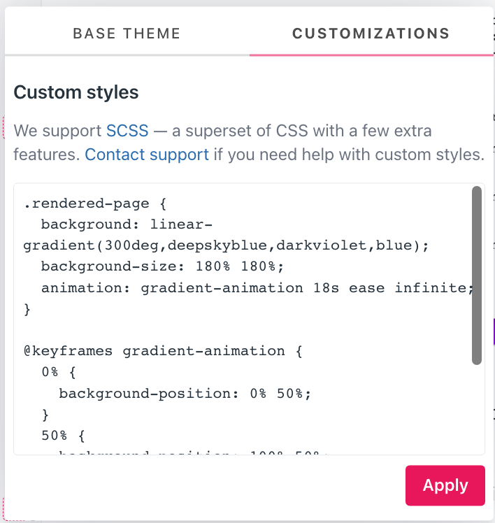 This will apply the gradient to the page, but only in the published mode β in the editor the page will remain as it is.