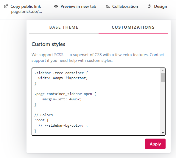 *Note that the changes will only show on the public page, and not in the editor. In the editor you can resize the sidebar (for your device only) simply by dragging its border.