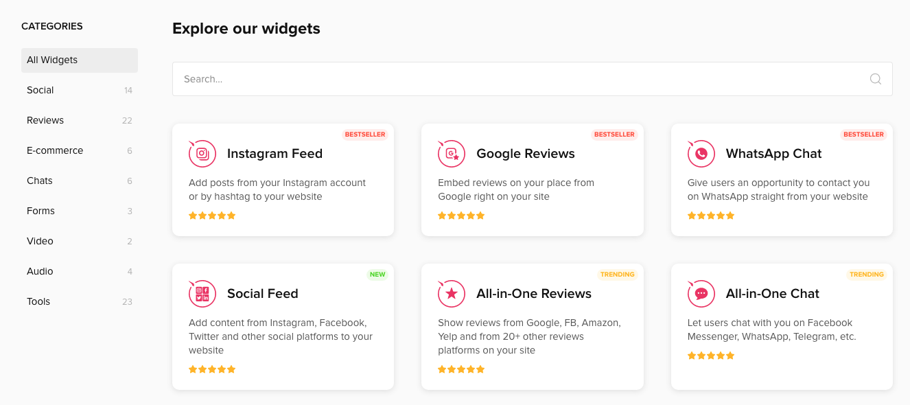 Analytics Google Analytics Google Analytics — very popular and free for most usecasesMatomo — another popular analytics service, open-source and can be self-hostedHockeyStack — advanced analytics, see a live demo here Plausible — a simple, non-overwhelming analytics serviceMicrosoft Clarity — a completely free heatmaps & session recording service that lets you see how users interact with your siteCustomer support & text chat Tawk.to Video chat 11Sight Sales & conversions PageNudge — add expandable video bubbles to your pages' cornersPopups Images Juxtapose — a slider widget for image comparisonsVideos Swarmify — an advanced video embed with fast CDNPublitio — video hostingLoom — screen recorderCalipio — screen recorder, videos can be embedded even on the free planVmaker — screen recorder; videos can be embedded if you're on a paid planForms Jotform — a form builder with tons of templates Calendars and appointments TuCalendi — a booking widget you can embed into your pages Polls, feedback, announcements Emojise — a "did you like this?" widget with customizable emojiBug Reporting — a way for site visitors to record & send a feedback videoTrust — collect testimonials and ratings from your visitorsJimo — make announcements and ask for feedback from your visitorsLoopedIn — make announcements, collect ideas, and keep a public roadmapAll-in-one Elfsight — a large collection of embeddable widgets Miscellaneous Statically — generates text/avatar pictures, page screenshots, serves files from GitHub and optimizes imagesCandu — a general-purpose widget builder with cards, checklists, etcBoei — a corner widget with different links or chat optionsSpreadSimple — create a gallery (e.g. product gallery) from a Google Sheets spreadsheet; the paid plan allows embeddingFormaloo — interactive forms / no-code applications (e.g. a mortgage calculator for your site's visitors)Plug&Paid — checkout forms, tools for online shopsQuickblog — a simple embedded blog for your siteComments.app — a comment box for your visitors; we have an integration guide here Pyscript.net - allows you to use Python in a Brick HTML box